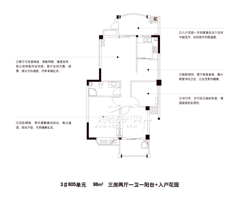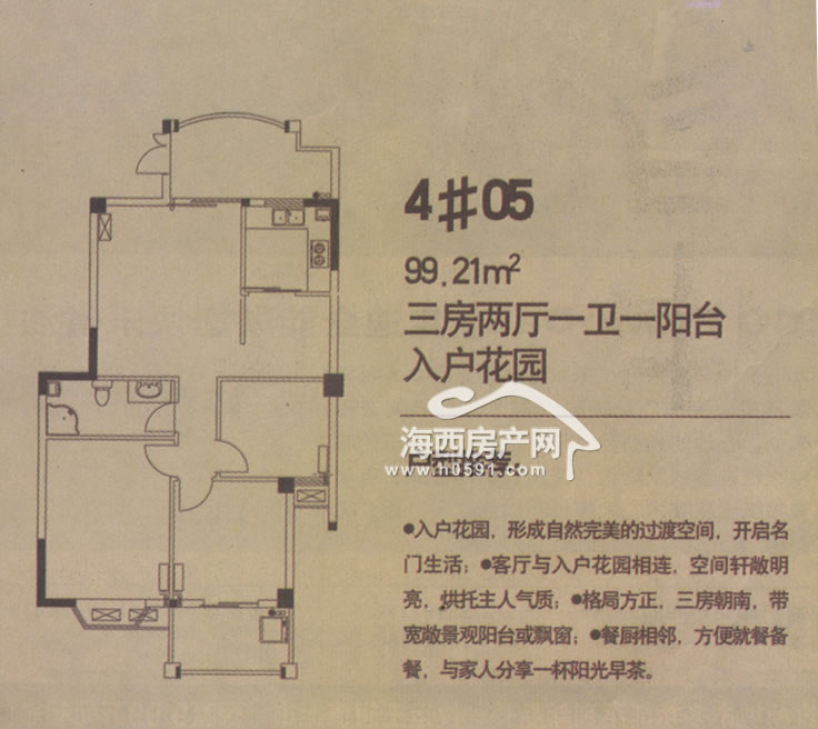 99.21平 三房两厅一卫一阳台带入户花园